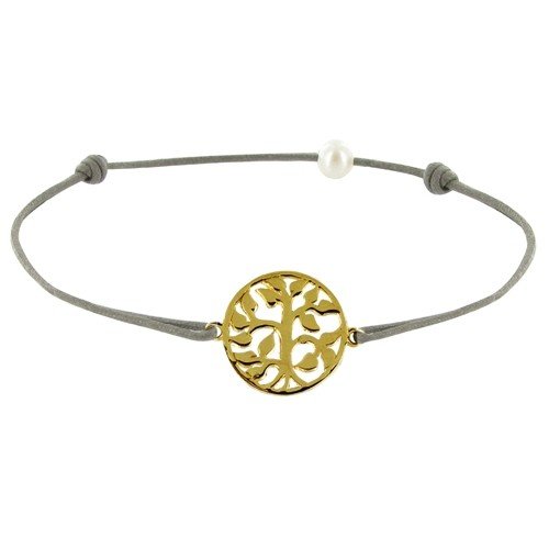 Bijoux Les Poulettes - Bracelet Lien Arbre de Vie Plaqué Or - Lien Gris Foncé