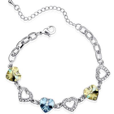 Bracelet " Coeurs Multicolores " Plaqué Or Blanc - Cristal Autrichien (type cristal Swarovski)