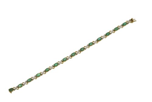 Bracelet - Femme - Or jaune (9 carats) 7 Gr - Diamant - Emeraude 6.42 Cts