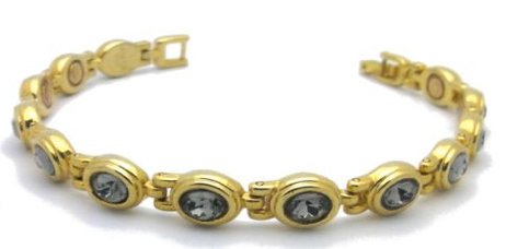 BRACELET aimante magnetique GOURMETTE PLAQUE OR AVEC DES PIERRE INCRUSTE COULEUR NOIR GRIS en acier inox "stainless steel" 12 aimant 1500 gauss chacun taille reglable (par un bijoutier) dimension 0.6cm de largeur 19cm de longueur