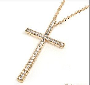 Pink© -Unisexe les femmes, Collier cross traverser - CZ braceletor jaune plaqué, charm collier Pendentif Kreuz - Jesus Christus Kruzifix - Caravaca