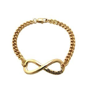 Belieber - Bracelet couleur or avec breloque du symbôle de l'infini "Belieber(TM)" l. 4 mm L.17,8 cm chaîne à maillons XB321G