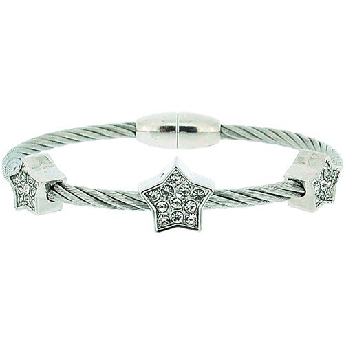 La Olivia Collection vous présente ce joli bracelet facile à mettre ou à enlever. Lorsquil est porté, il produit un effet stylé et classe. Sur une base en métal, il est orné de trois étoiles en forme de coeurs serties de cristaux transparents qui attrapent la lumière pour briller. Un très simple système magnétique permet de louvrir et de le fermer facilement. Le bracelet a une circonférence de 15cm. Il sera parfait pour un cadeau danniversaire, pour la fête des mères ou même pour Noël!. 1